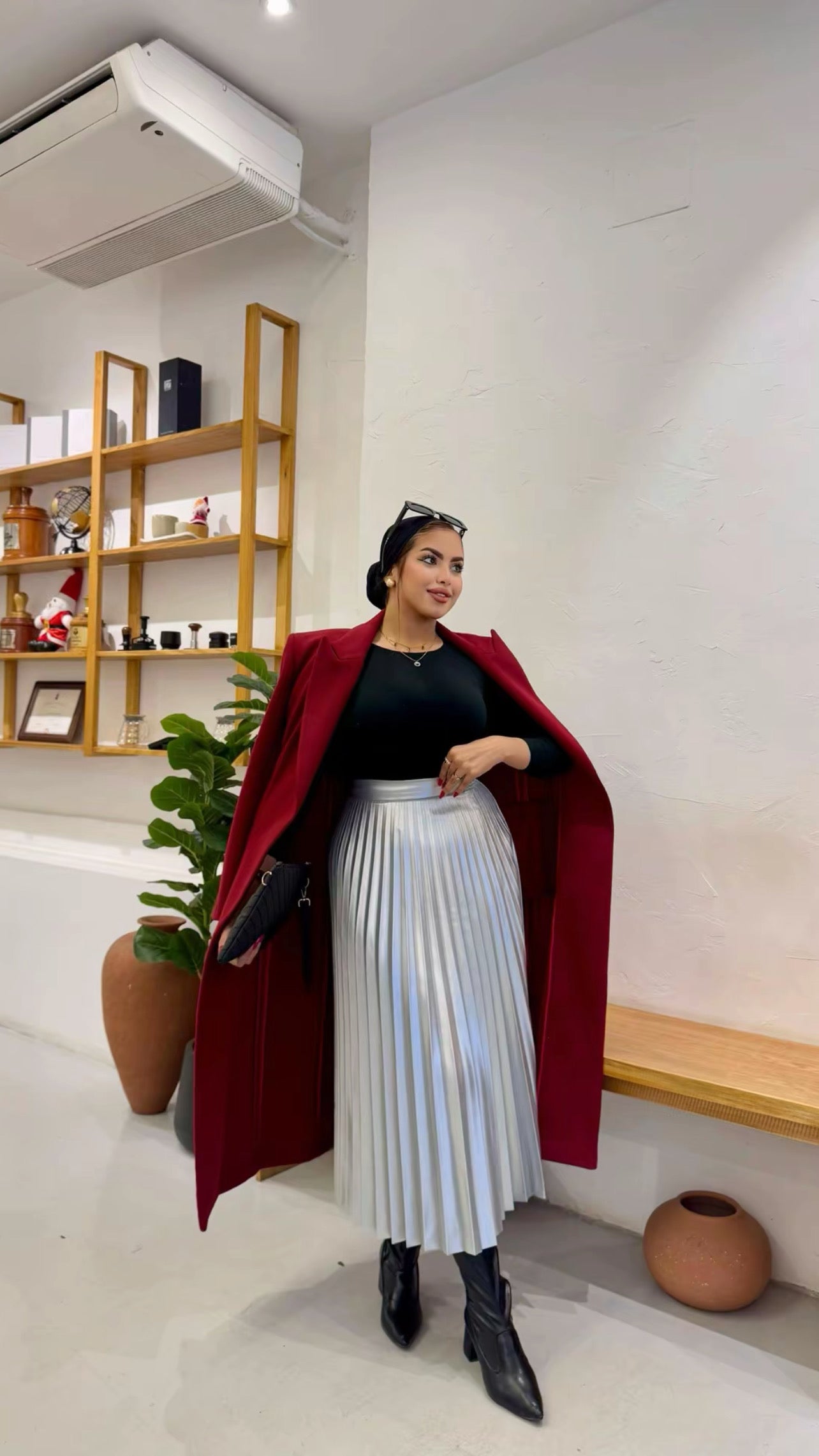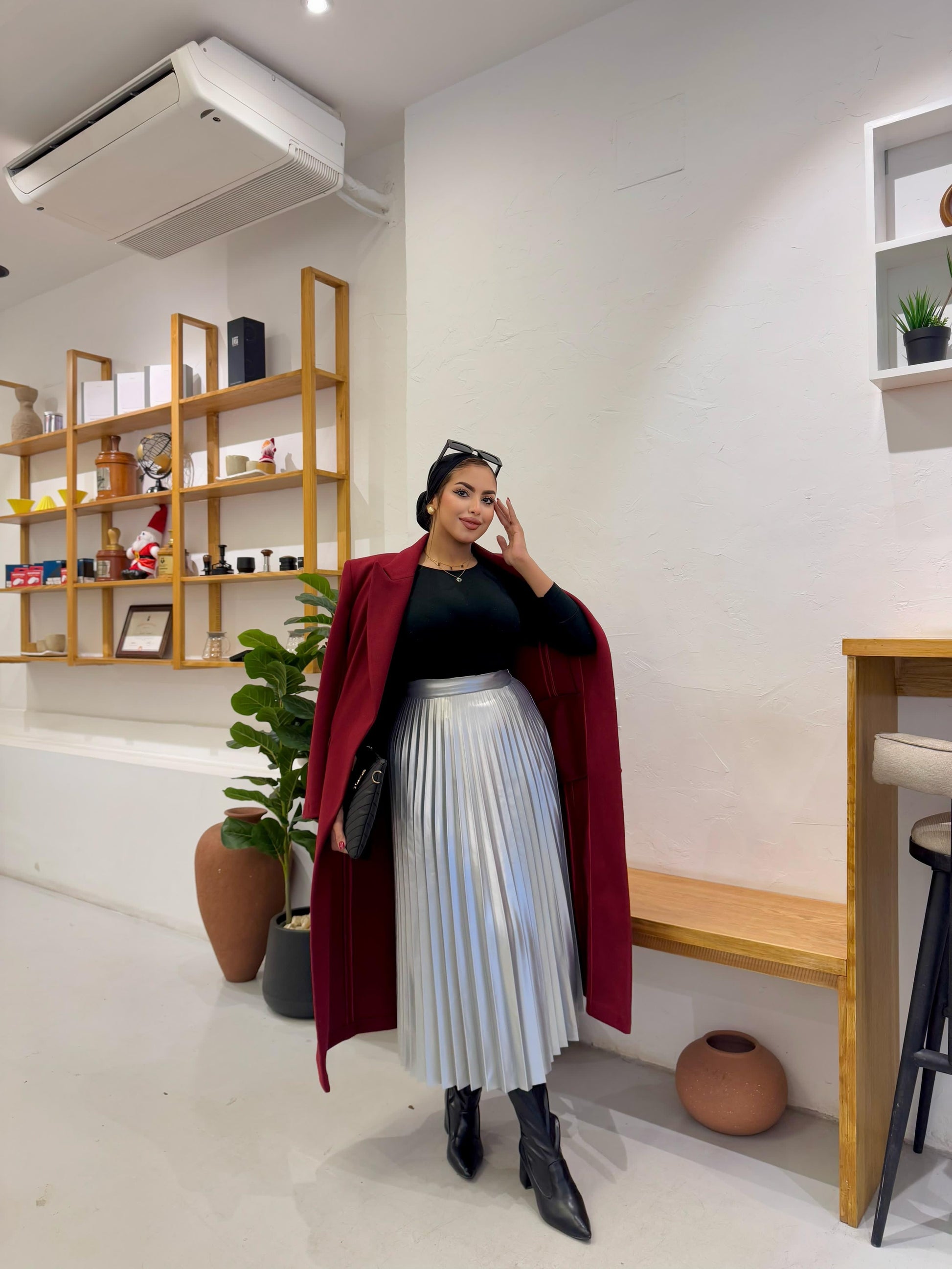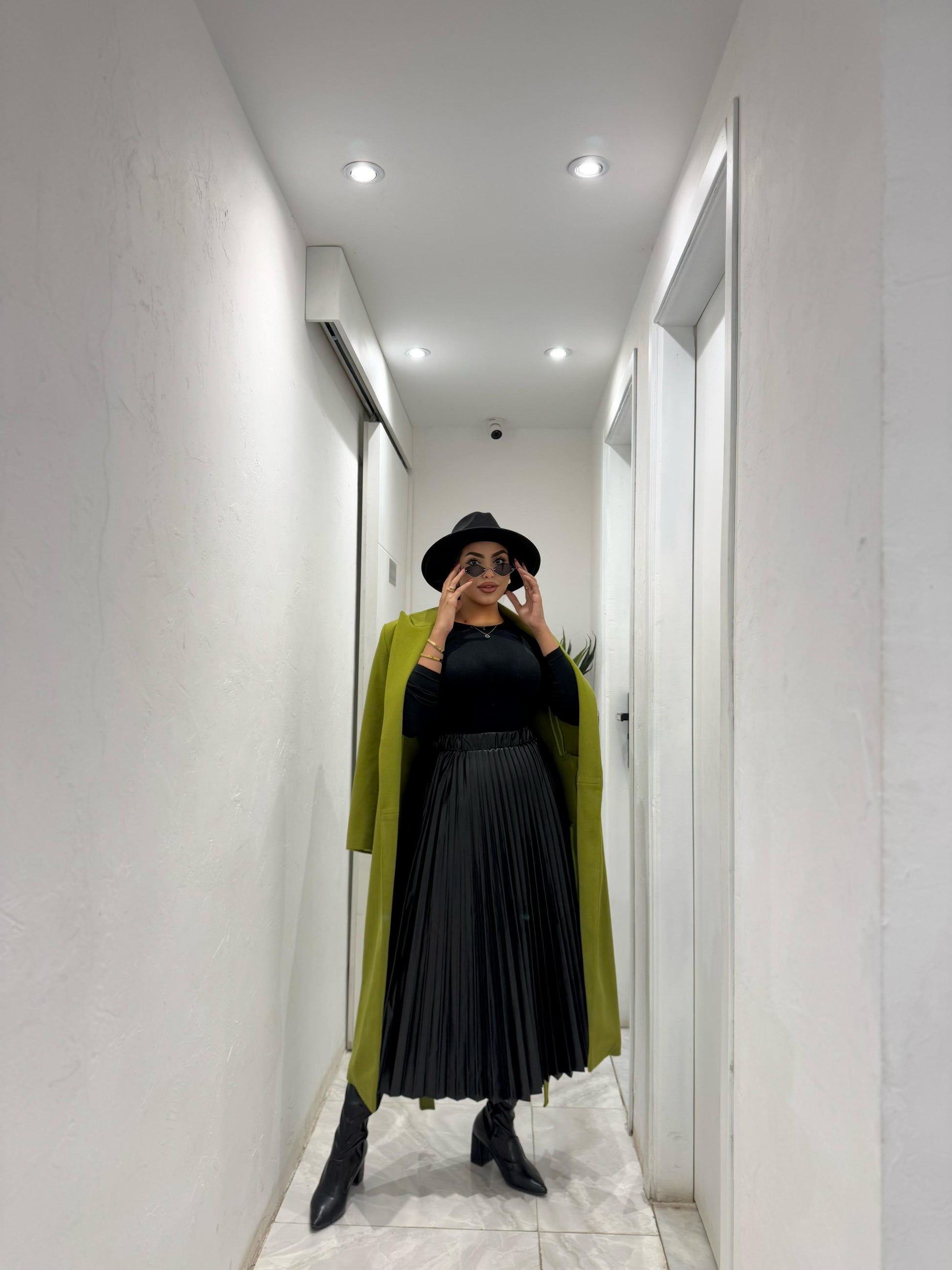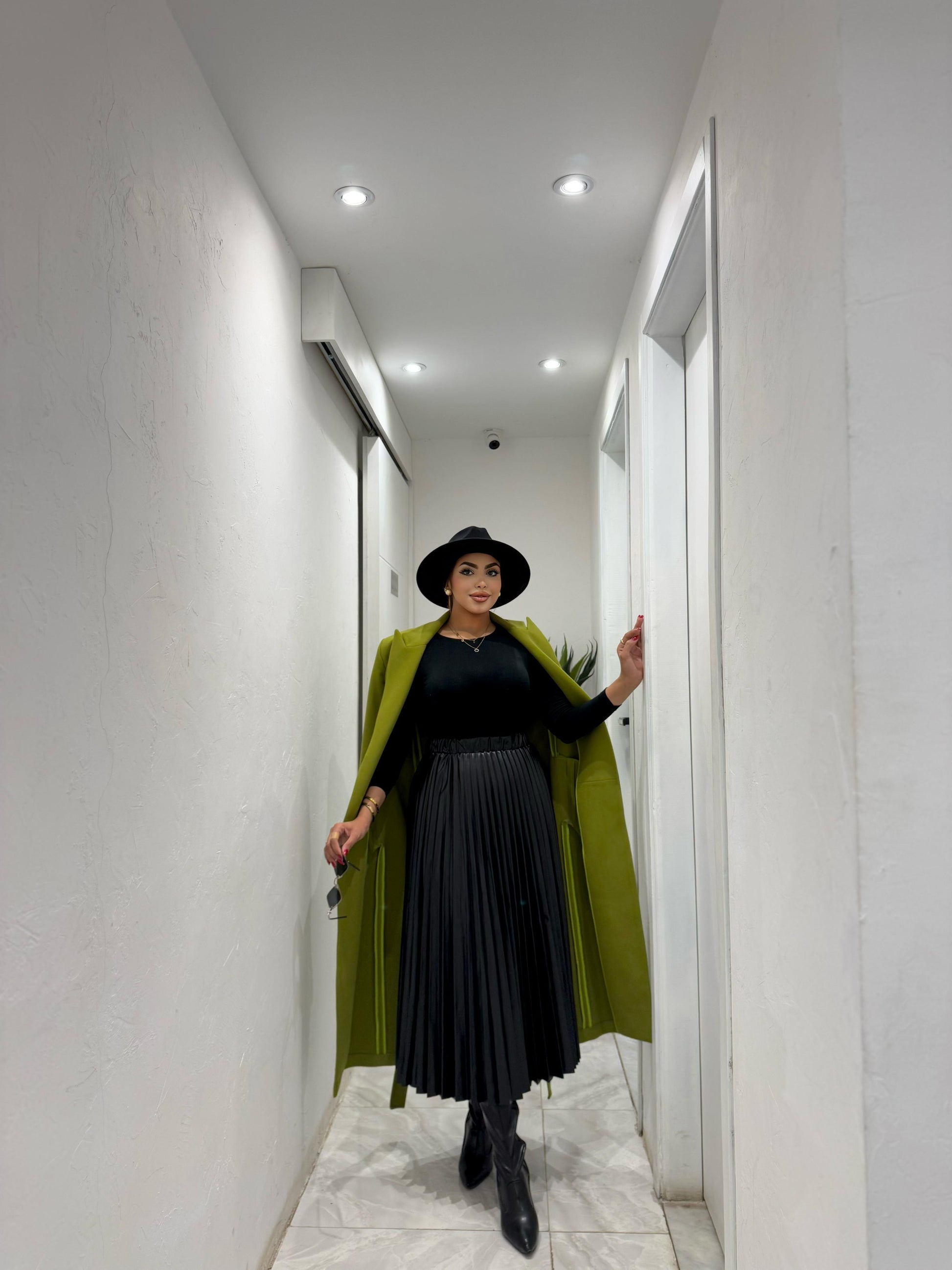 pleated leather pocket